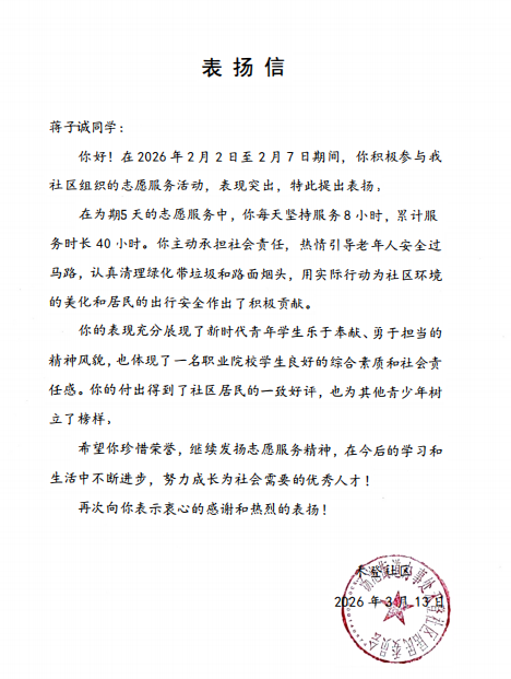 在实践中,同学们立足本职、踏实肯干,展现出新时代青年深厚的家国情怀与强烈的担当精神。在社区服务与公益领域,同学们的身影成为冬日里一道温暖的风景线。他们主动投身社区环境美化、网格化服务、智慧助老、孤寡老人关怀及留守儿童陪伴等工作,在广袤的田野上留下了坚实的青春足迹。
