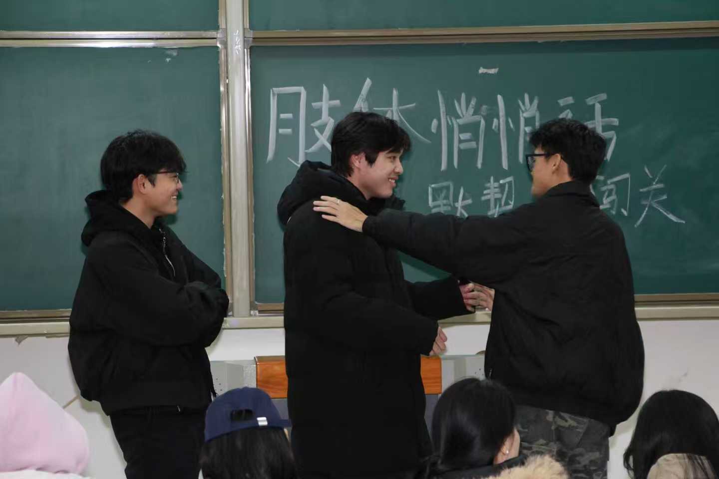 活动以肢体动作传递信息的趣味形式,第一个同学比出仰头望月的动作,经过三人间的传递,队尾同学却演成了伸手摘星,从经典故事,草船借箭的船桨挥舞,到书本情节里,掩耳盗铃的捂耳遮目,每个动作都要在30-60秒内完成接力。活动现场爆发出阵阵笑声,原本陌生的同学也不自觉地凑近了些,同学们用抽象的动作,让默契在动作的传递中悄然生成。