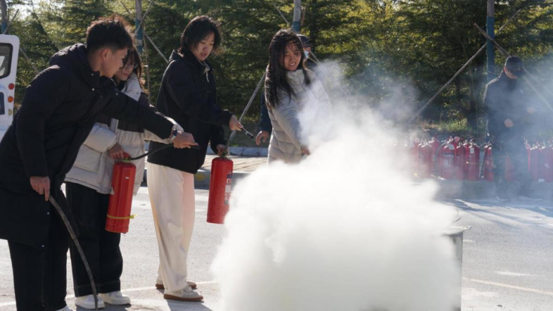 理论讲解后进入实战演练环节。在专业人员指导下,宿舍长们分批开展灭火器实操,熟练掌握“一看、二提、三拔、四瞄、五压”操作口诀,成功处置模拟初期火情。随后,培训模拟宿舍楼火情与烟雾报警场景,宿舍长们在引导下组织“宿舍成员”(参训同学模拟)用湿毛巾捂口鼻,低姿快速有序撤离至安全地带,有效检验了应急疏散预案可行性与宿舍长现场组织能力。