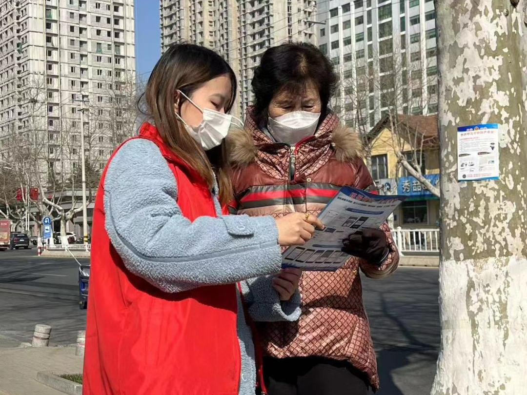 当日早上7点,志愿者同学们踏着晨光从学校统一出发,经过半小时车程,到达目的地——文登兴隆社区。随后,志愿者们便立即投入到志愿服务工作当中,活动现场,志愿者们在兴隆社区党群服务中心门口设立了宣传小站点,为居民们讲解防诈骗技巧妙招等知识,发放了纸质宣传资料,为居民耐心解释各种疑问,居民们也细细询问、认真倾听。此外志愿者们还积极引导居民下载国家反诈中心APP,注册金钟罩小程序,并耐心进行用法指导,进一步帮助群众增强防电诈牢反诈防线。