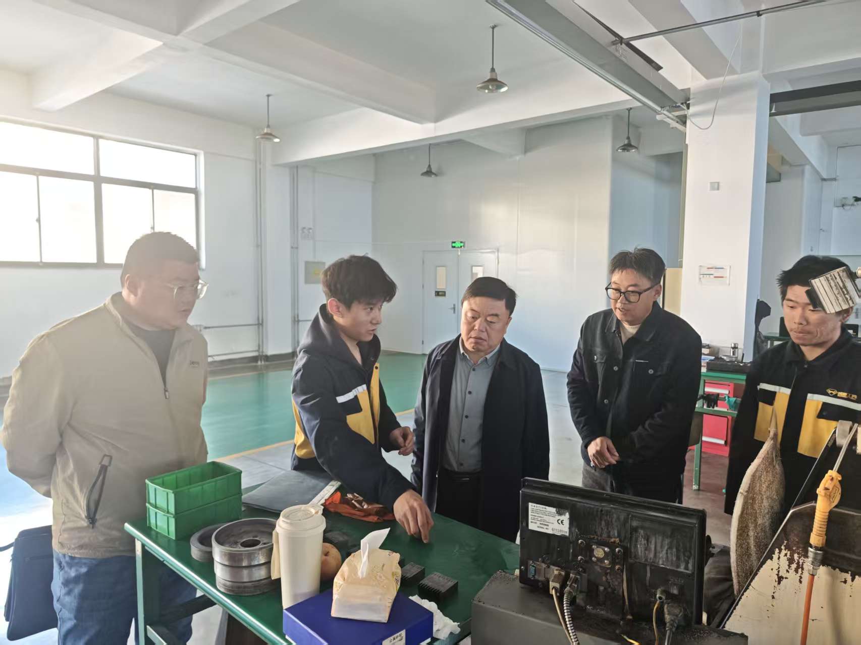 王磊在了解了学生所在的岗位情况后,鼓励大家珍惜实习机会,主动将课堂所学与生产实践结合,在实操中锤炼技能、积累经验;要保持谦逊好学的态度,多向企业师傅请教,勇于直面挑战、补齐短板;要树立良好职业心态,培养爱岗敬业的精神,为未来职场发展打下坚实基础。同时,他与企业负责人现场沟通,了解企业对人才培养的需求,明确学校将持续优化教学方案,确保教学与岗位需求精准对接。